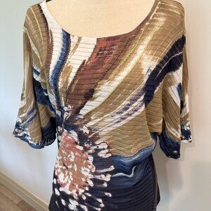 Chagall Floral Painter Watercolor Top Angel Sleeve Scoop Neck Beaded details L