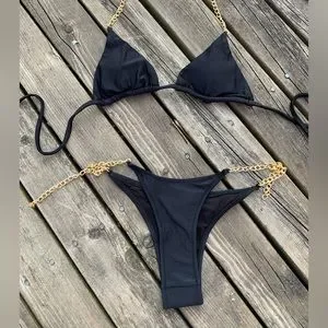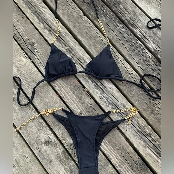 Brand new adjustable bikini with chain ties. Black size small. From PinkandPoshy.com