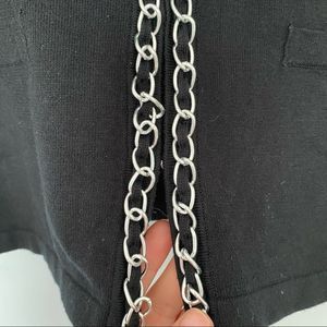 Brand: Red. Chain trimmed cartigan. Black in colour, silver chain hardware. Inside hidden clasps. Gorgeous sweater size medium M. pit to pit 20”