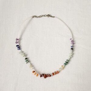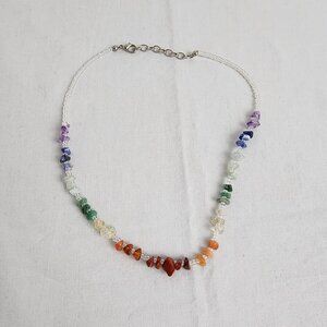 Chakra Rainbow Gemstone Chip Beaded Necklace Energy Healing Handmade