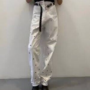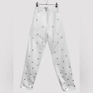 Chakshyn Designer Grommet Silver/White Straight Leg Pants 100% Cotton