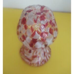 Chalet Canada Art Glass Vase Diamond cut Red, Clear & White 5 1/4"