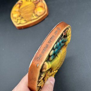 The pair of wall hangers is a great addition to any art collection or as a standalone piece. Made in the United States, these hangers are a testament to the quality of American craftsmanship. Ideal for those who love fruit-themed decor and vintage items, these wall hangers are sure to impress.