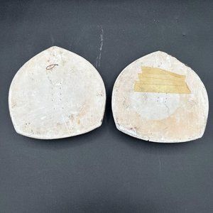 Add a vintage charm to your home decor with this pair of Miller Studios chalkware wall hangers. Made in 1967, these small-sized wall hangers feature a colorful fruit basket and vase design, perfect for adding a pop of color to any wall. Crafted from durable chalk material, these hangers are suitable for any room and come with a featured refinement of vintage chalkware.