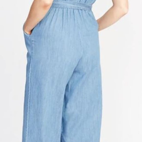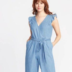 Chambray Faux-Wrap Tie-Belt Jumpsuit XXL