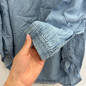 Soft, lightweight chambray fabric, elastic detail across top of shirt and on arms.