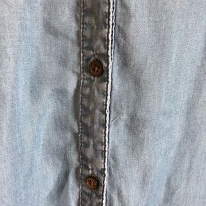 Chambray Shirt Size 16 Short Sleeves Button Up Embroidered Lyocell