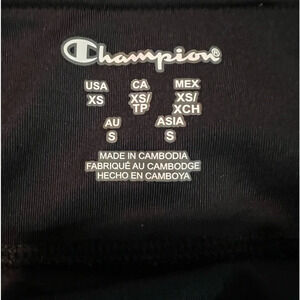 Champion Black Leggings Women Size XS White C Logo Stretch High Rise Crop