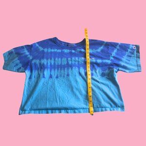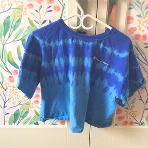 🌀 Champion Blue Tie-Dye Crop Tee – Size L (Loose Fit) | Streetwear Essential