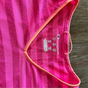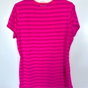 Champion Brand Bright Pink Striped V Neck Short Sleeve T Shirt Large