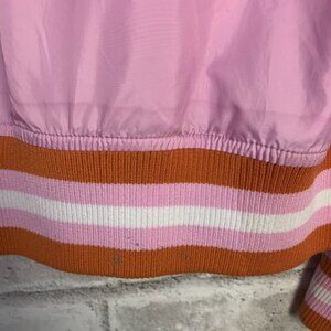 Champion Pink Coach Jacket Embroidered Snap Front Windbreaker Bomber. Logo, spellout, mesh lined, pockets. Please reference pictures for a few spots