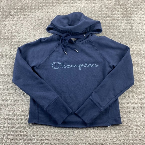 Champion Cropped Cut Off Sweater Women Small S Blue Hoodie Pullover Sweatshirt