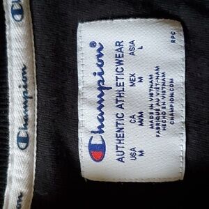 Stay stylish and comfortable with this Champion cropped sweatshirt featuring a vibrant all-over logo print. Crafted with a cotton-poly blend, this medium-sized piece offers excellent condition with no visible wear.
