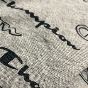 Experience the perfect blend of comfort and style with this Champion gray hoodie. Featuring an all-over print of the iconic 'Champion' logo, this sweatshirt is ideal for casual outings. Its soft, textured fabric ensures warmth and a cozy fit. Small marks