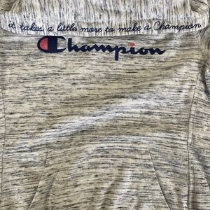 Grey Women's Champion Hoodie with "It Takes a Little More to Make a Champion" Engraved on Hood