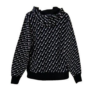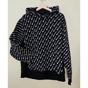 Champion Hoodie Mens L Black AOP Kanga Pocket LS Reverse Weave Y2K Streetwear