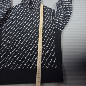 Champion Hoodie Mens Large Black Reverse Weave All Over Logo Script Pullover