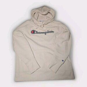 Champion Hoodie Size S White Blue Logo Kangaroo Pouch Long Sleeve Sweatshirt