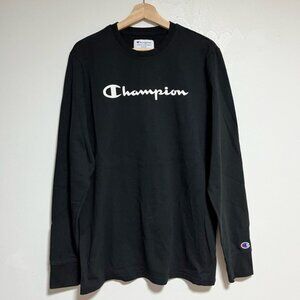 Classic Champion long sleeve tee in solid black with bold white script logo across the chest and embroidered “C” logo on the sleeve. Made in Cambodia from soft 100% cotton for everyday comfort. Ribbed cuffs and crew neck offer a clean, athletic look—perfect for layering or solo wear.