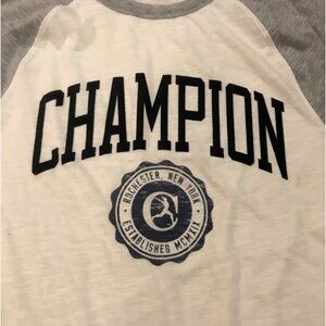 Champion Mens Baseball Raglan Tee 3/4 Sleeve Gray & White Size M