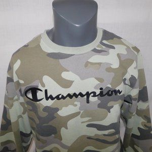 Champion Mens L Spellout Green Gray Camo Crew Neck Sweatshirt