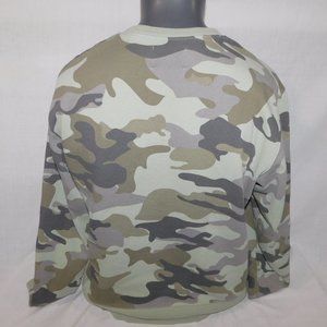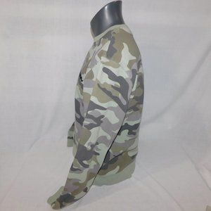 This hard to find Mens Large Champion spellout Green Gray Camo Crew Neck Sweat Shirt is in great clean bright condition. Sweatshirt is 70% Cotton - 30% Polyester - Machine washable.