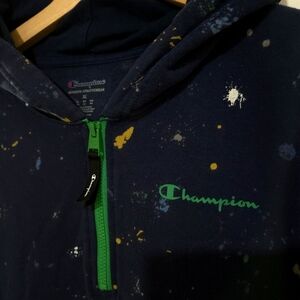 Champion | Men's Navy Hoodie Paint Splatter Pattern