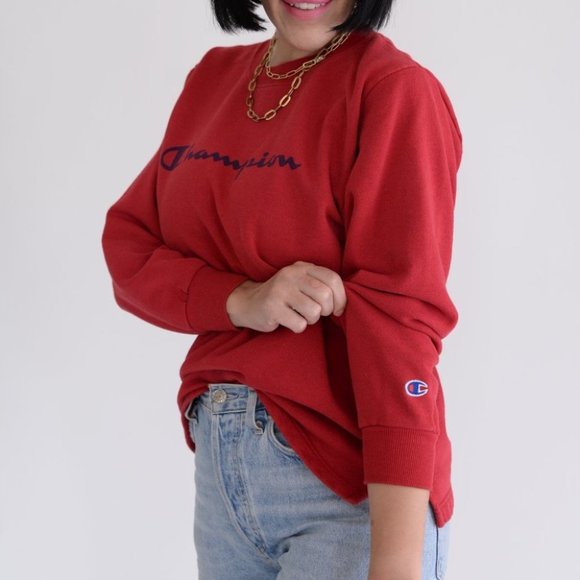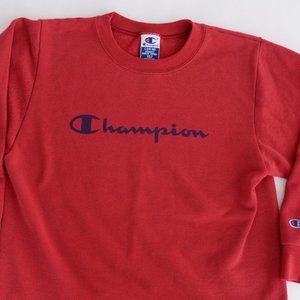 Champion Red Long Sleeve Crewneck Graphic Logo Sweater Size Large (14-16) Kids