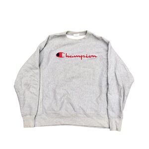 Champion Reverse Weave Crewneck Large Gray Big Logo