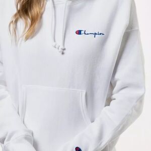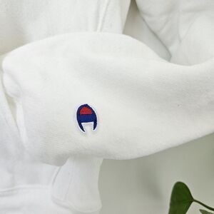 Champion Reverse Weave White Hoodie Small Classic Pullover Sweater Logo Embroide