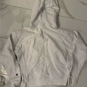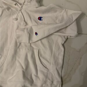 Soft white sweatshirt. Small staining on hoodie as shown in last photo