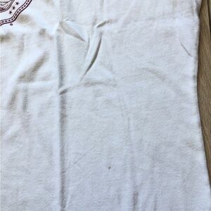 Tiny stains around belly and hem. Please see the last pictures. Otherwise in great condition.