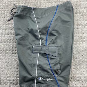 Champion Swim Trunks Men Medium M Gray Blue Bathing Suit Board Shorts Embroider