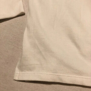 This sweater is pre-owned and in used condition. There are some small stains on it, espcially around the cuffs and sleeves. There is a small hole around the collar. Please see all photos for exact item.