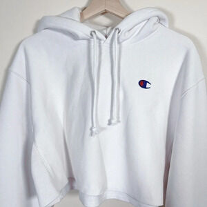 Champion Women's Reverse Weave Cropped Hoodie In White