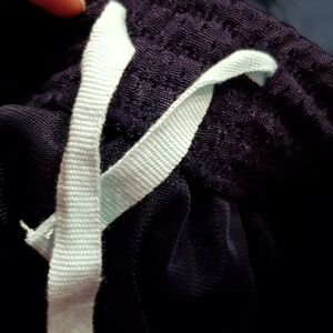 New Champion dark blue mesh lined shorts with 2 lighter shades of blue on the bottom of the shorts blue stripe up the side of the leg functional drawstring, elastic waist. sized medium 7/8