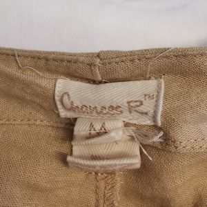 Chances R Tan Linen Blend Shorts with a rope belt. Size Medium. Measurements are in the photo section. Condition is very good. Have been washed and steamed. Feel free to contact me with any questions. Thank you.