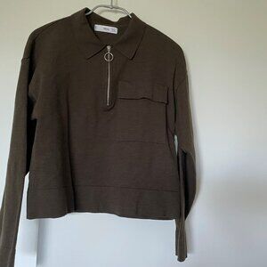Chandail sport chic de couleur olive (sur le site de Mango : Pull-over maille poche)