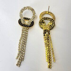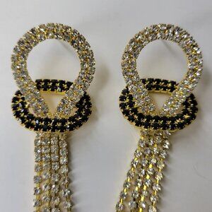 Elevate your look with these stunning drop earrings featuring shimmering strands of crystals and black crystal rhinestone beads for glamorous style.