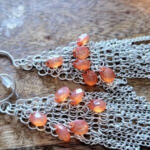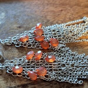 silver dangle earrings with vibrant orange accents. Perfect for adding a pop of color to any outfit.