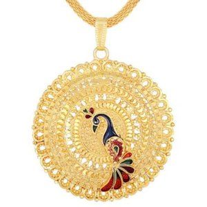 Collier pendentif traditionnel rond plaqué or style matinée pour femme. Ce collier pendentif rond traditionnel plaqué or pour femme est en laiton. Ce bijou accentue votre beauté et complète votre robe. Rendez vos moments inoubliables avec ce bijou traditionnel de haute qualité. / Traditional gold plated round pendant necklace for women. This traditional gold plated round pendant necklace for women is made of brass. This jewelry accentuates your beauty and complements your dress. Make your moments unforgettable with this high quality traditional jewelry.