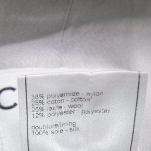 Composition: Body: 38% Nylon, 25% Cotton, 25% Wool, 12% Polyester; Lining: 100% Silk.