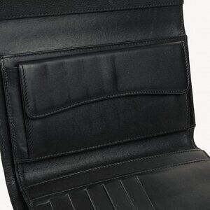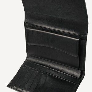 This wallet from Chanel is crafted from a Noir Caviar leather, and features silver-tone hardware, a back patch pocket, a front snap-closure flap with the iconic interlocking CC logo, a snap-closure flap compartment, four slip bill compartments, a large slip compartment, and six card slots.