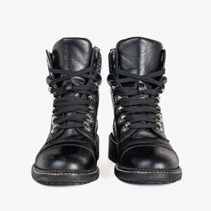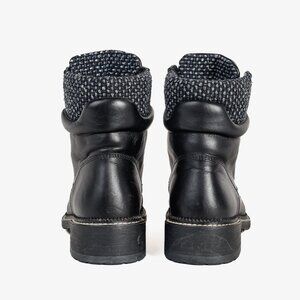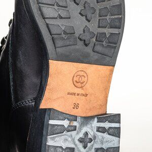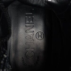 Chanel 15A Black Leather Tweed-Trim Lace-Up Short Boots, Size 6