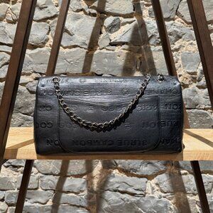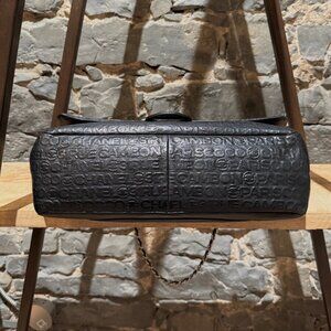 Soft black embossed leather featuring the all-over “CHANEL COCO PARIS 31 RUE CAMBON” pattern. Branded silver-tone hardware. Rectangular turn-lock closure engraved with Chanel lettering (Mademoiselle lock). Double chain strap interlaced with leather. Back slip pocket. The interior is designed with a black leather flap, a zip pocket and beige grosgrain lining featuring the stitched CC logo, and three (3) compartments. 12 series (circa 2008-2009) Made in France. Comes with authenticity card and booklet.