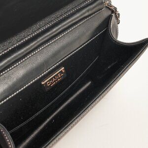Circa 2017, this shoulder bag from Chanel is crafted with a mix of ivory white and black leather pieced together in a patchwork design, and features gold-tone hardware, a leather chain shoulder strap, a magnetic-snap flap with the designer's interlocking CC logo on the front, and a tonal satin-lined interior.