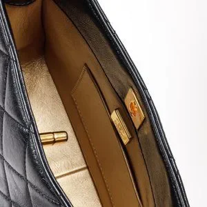 Condition: Excellent; faint slouching, light creasing on exterior leather, comes with box, dust bag, unattached tags, and care booklet