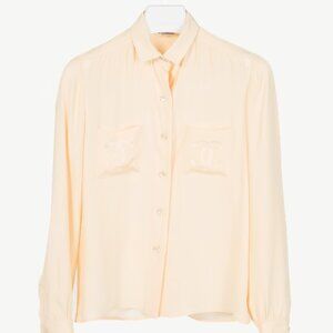 Chanel 70's-Vintage Cream Silk CC-Pocket Buttoned Blouse