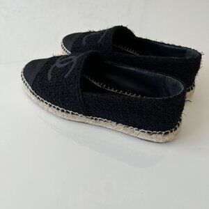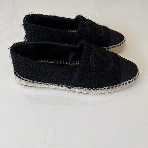 Black tweed Chanel Authentic Espadrilles. Size 37. Used, like new. Includes box and dust bag. Can provide copy of receipt.