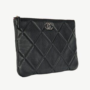 Chanel Black 19 Model Lambskin Quilted Medium O-Case